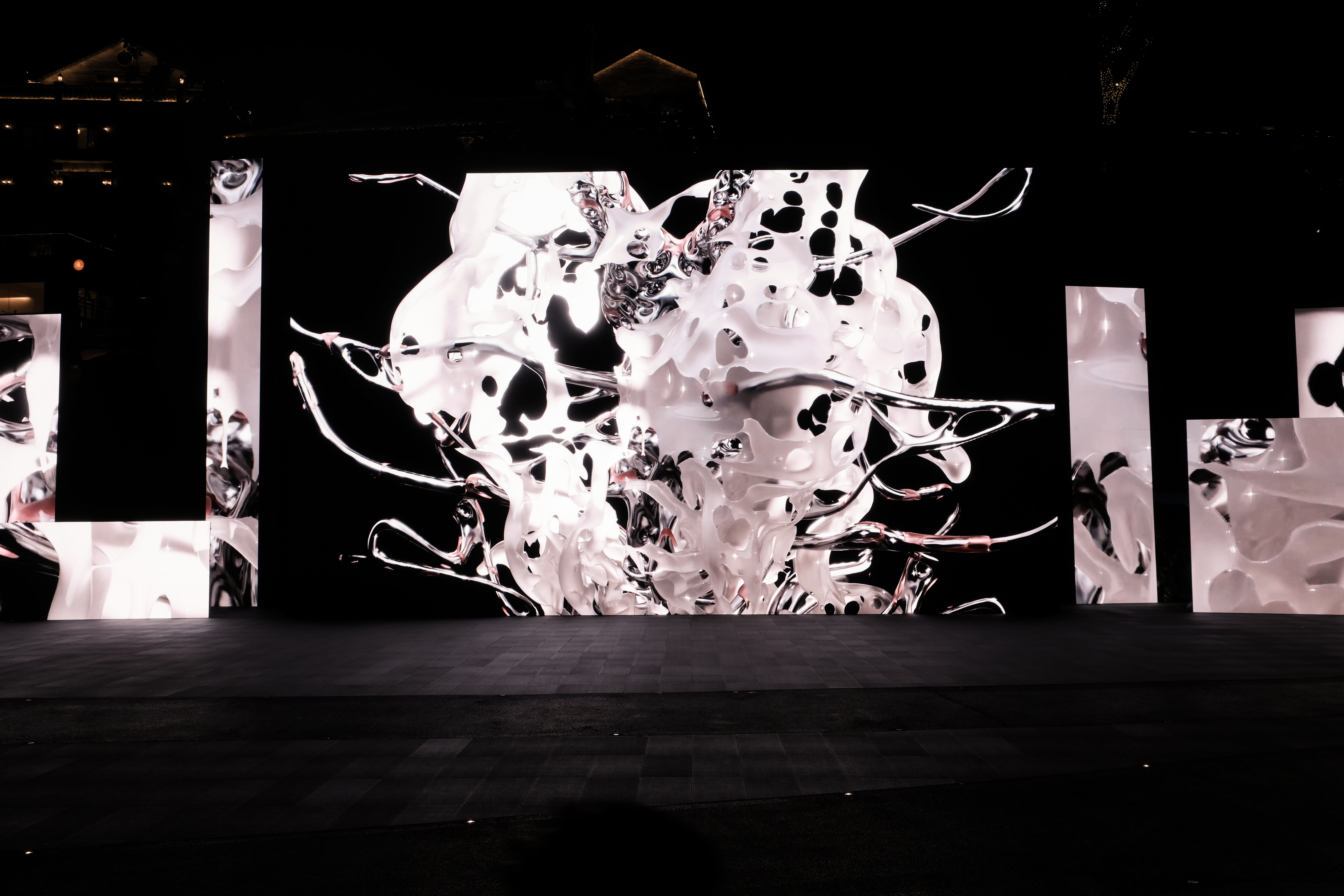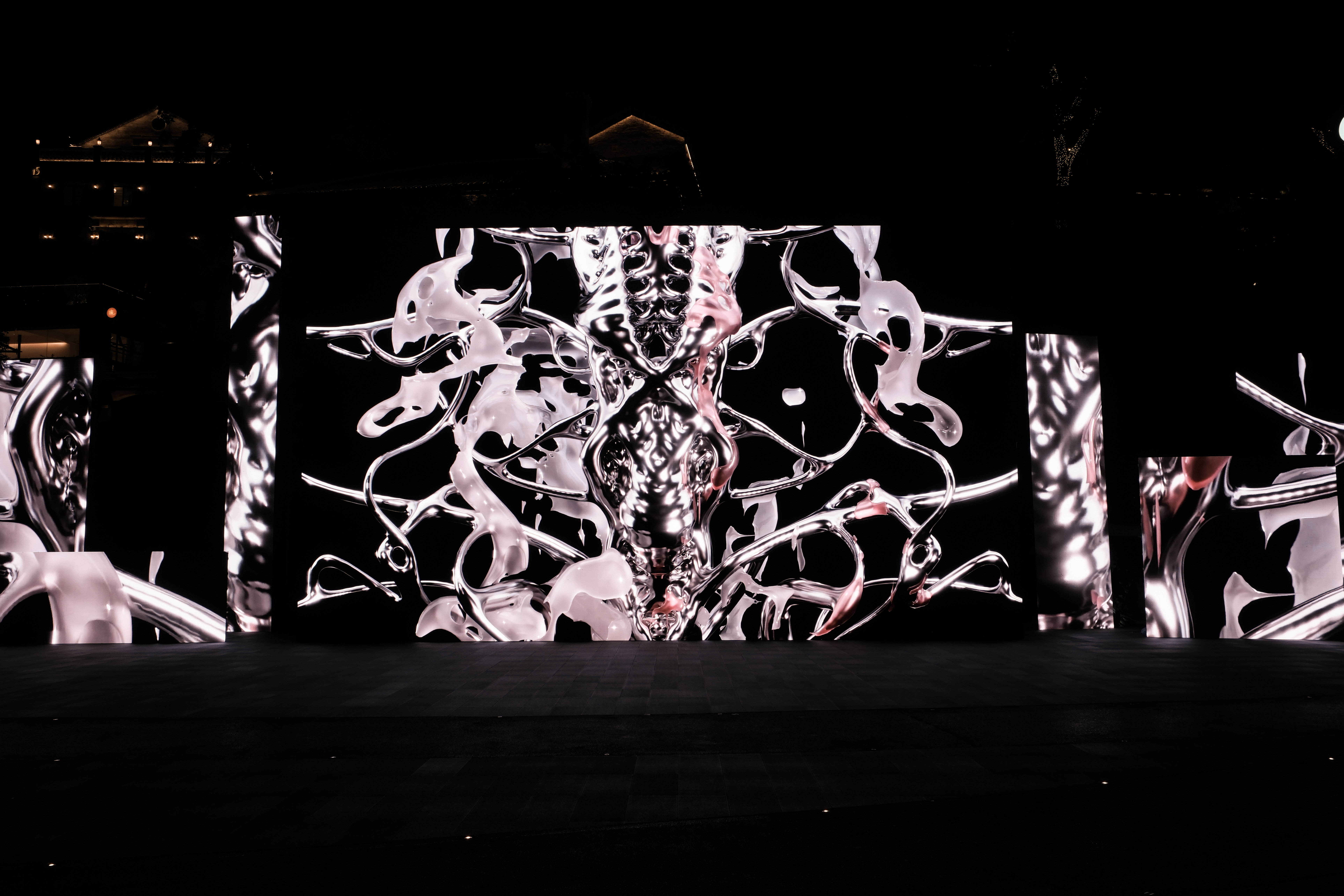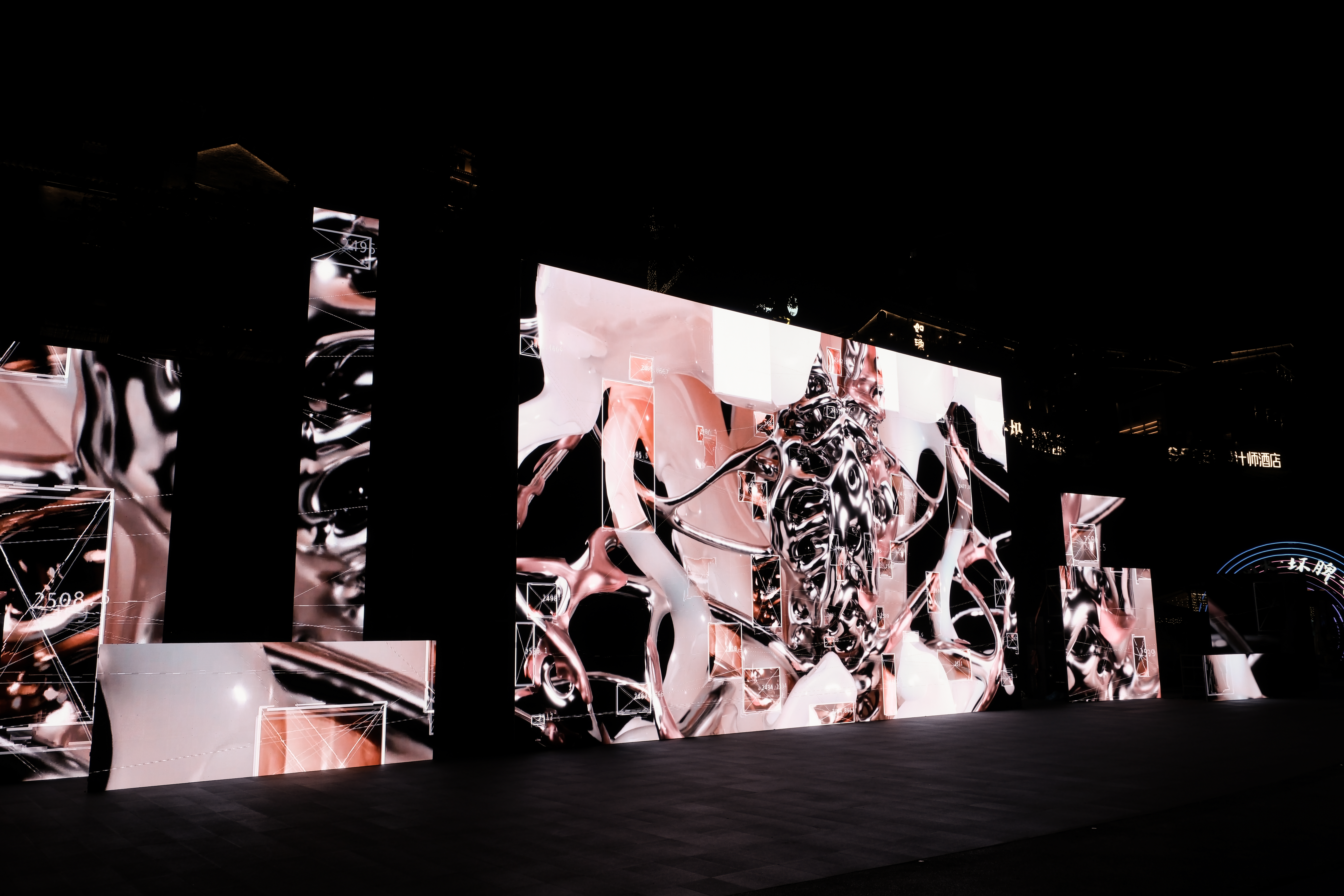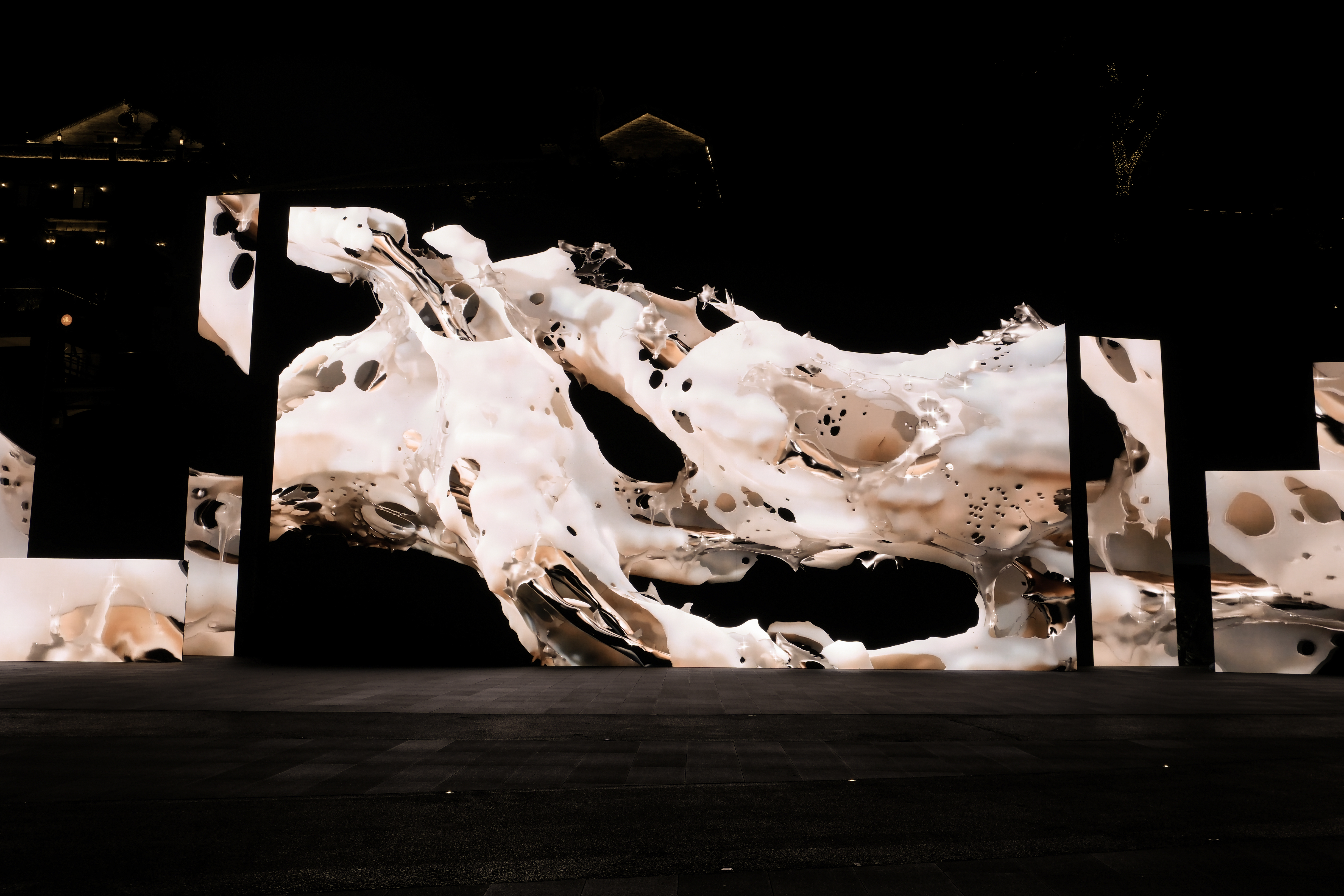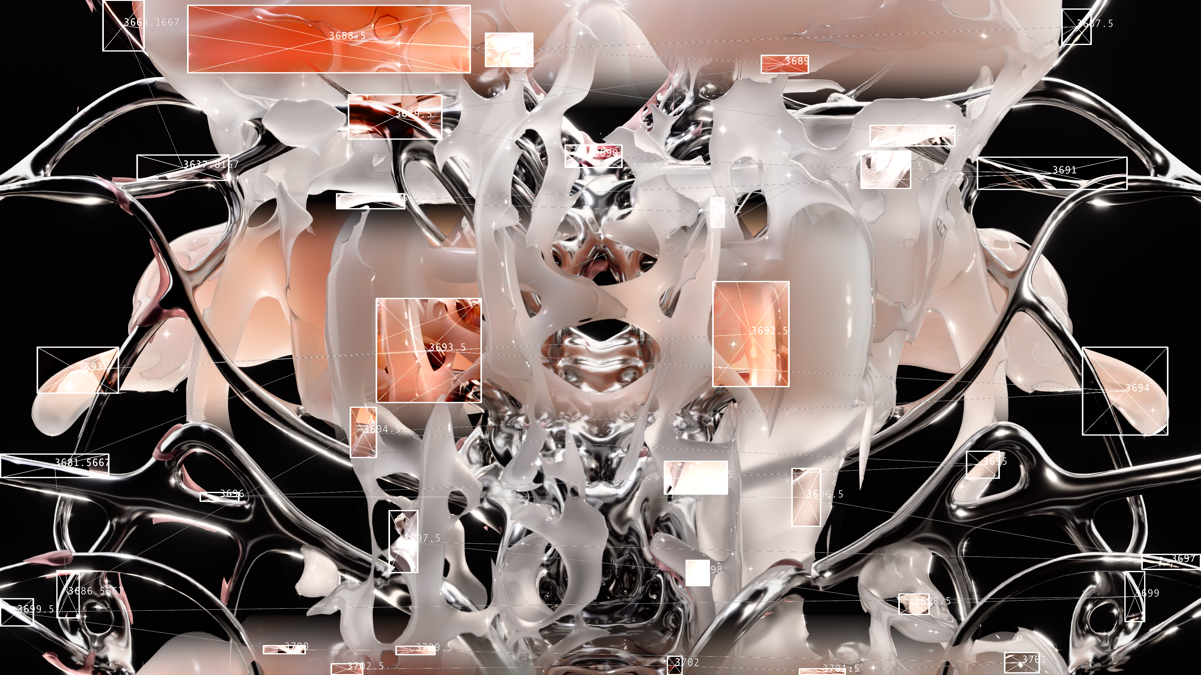 《阈间构形》是一组参数化生成的数字雕塑,捕捉那些“近乎成形却始终未定”的状态。它既藏匿于个体的情绪与身体感知中,也浮现于城市残迹、生态演化等系统之中。作品以“阈值”为生成核心与隐喻载体,将这类状态转译为不断重组与延展的多孔表面、骨架痕迹与类生物结构,呈现未完成并非停滞,而是一种持续生成的构成逻辑。