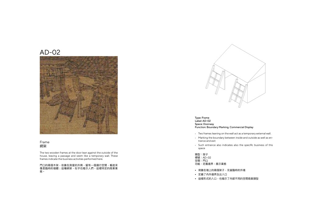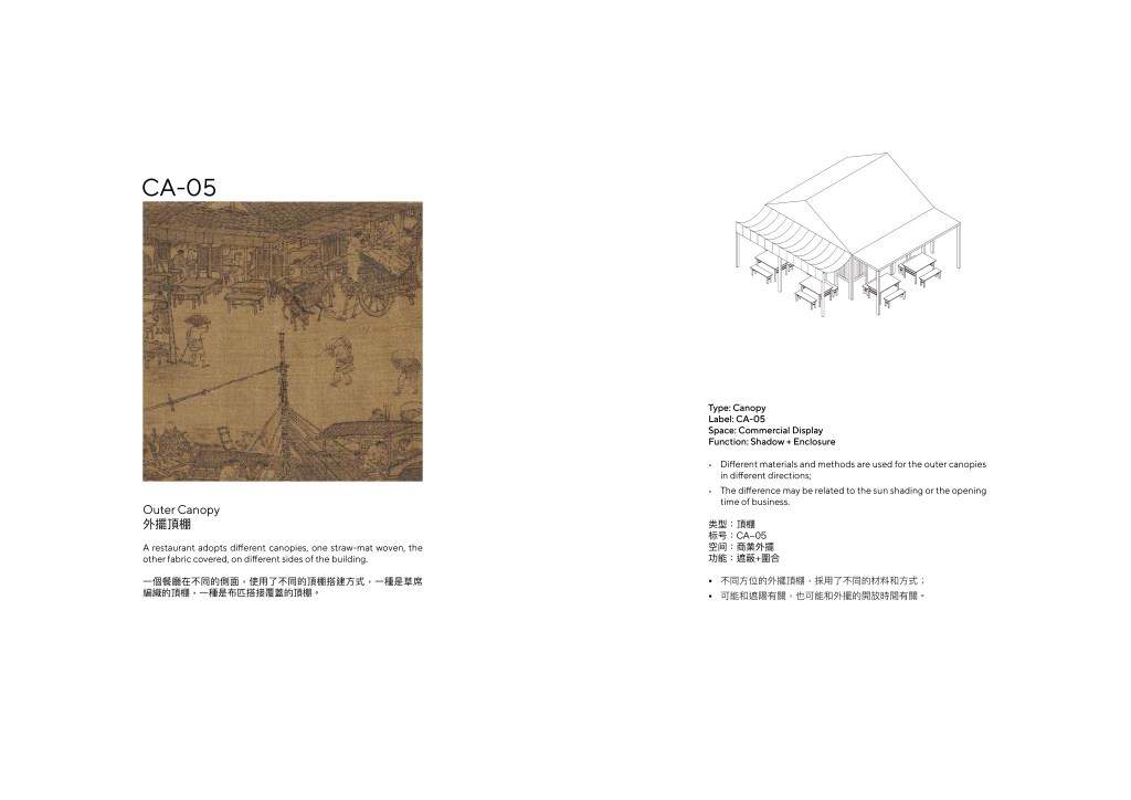 This research is based on the background mentioned above from a study of the Springtime Along the River and catalogues different typologies of adaptive social spaces as seen in the painting to create a dictionary for architectural use.