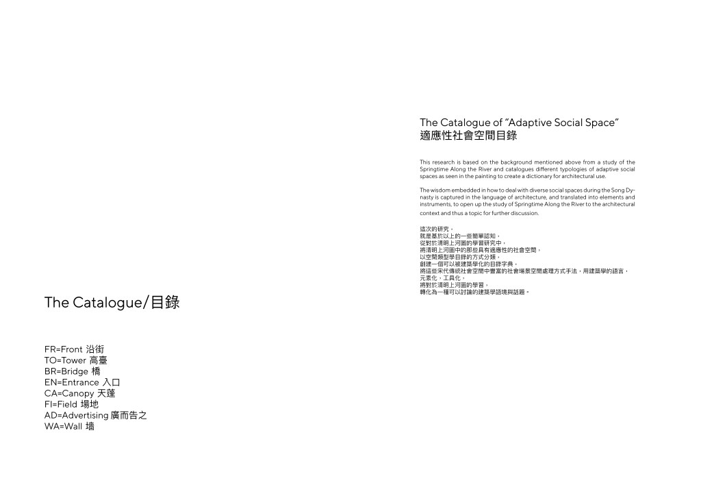 The wisdom embedded in how to deal with diverse social spaces during the Song Dynasty is captured in the language of architecture, and translated into elements and instruments, to open up the study of Springtime Along the River to the architectural context and thus a topic for further discussion.