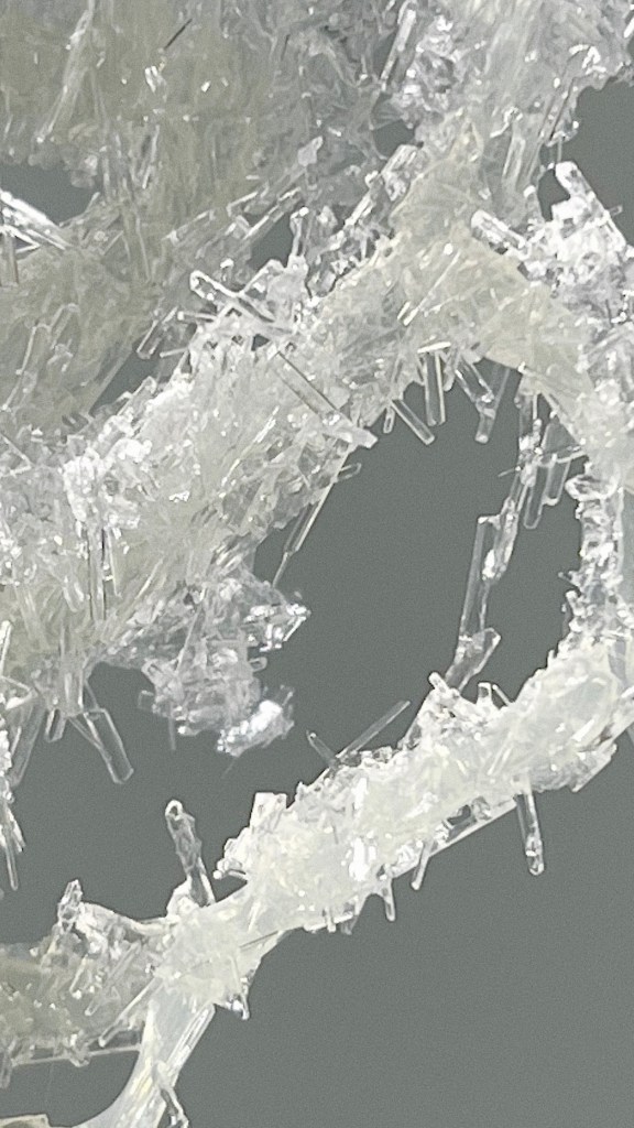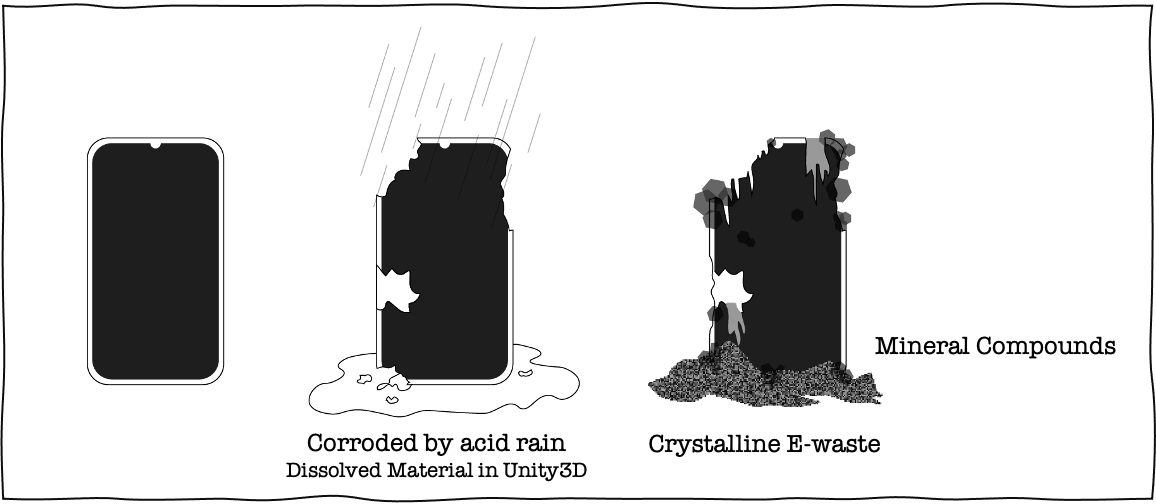 From raw mineral mining, manufacturing, shipping then to recycling, all processes generate toxic chemicals. They oxidise, corrode and then cause the acid rain. The cycle repeat itself, and generate new chemical compounds, such as sulphur oxides and nitrogen oxides, and acid rain again. And they finally will evaporate, then form the crystals and mineral wasteland.